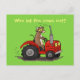Who let the cows out? This funny cartoon features our happy brown cow driving a bright red tractor. Fun and silly farm humour!