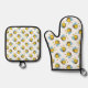 Cute happy bumble bee pattern white oven mitt & pot holder set