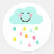Cute sticker featuring a little aqua blue cloud with a happy smile and colourful raindrops. Sweet and fun design. Could be used as envelope seals or as decorative stickers for birthday and baby shower party favours. Illustration by MheaDesign. For any enquiries regarding the image or printed design, please contact me through my Facebook page: www.facebook.com/MheaDesign