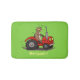Cute happy cow driving a red tractor cartoon bath mat