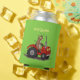 Cute happy cow driving a red tractor cartoon can cooler