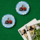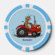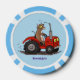Cute happy cow driving a red tractor cartoon poker chips