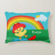 Celebrate the rain with this cute happy duck accent pillow. Pillow has a joyful yellow duck splashing in a puddle. The duck is wearing a polka dot hat and has a red umbrella. In the sky is a beautiful colourful rainbow, sun, clouds, and rain. Personalise the pillow with your child's first name.