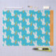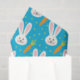 Add a cute touch to your Easter holiday gift with this adorable pattern of a bunny face and orange carrot on a blue background. For a personalised touch, add Happy Easter text with a first name (or delete, per your preference). Makes a great addition to a gift for a young boy or girl!