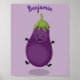 Cute happy eggplant aubergine cartoon illustration poster