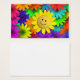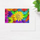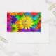 Adorable and cute yellow happy face flower resting on a bed of bright neon coloured flowers. Colourful and cheery.