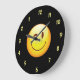 Cute reverse dial wall clock with a happy smiley winking face in the centre on a black background. There is no text on this product but can be added if desired, if you would like help to customise your product please contact me through my store and i will be very happy to you.