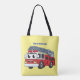 Cute happy fire engine cartoon tote bag