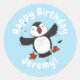 Cute happy flying puffin blue cartoon illustration classic round sticker