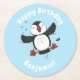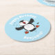 Cute happy flying puffin blue cartoon illustration round paper coaster