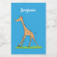 From the happy safari. This cute giraffe has a butterfly on his nose with a blue background.