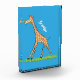 From the happy safari. This cute giraffe has a butterfly on his nose with a blue background.