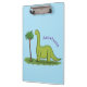 Cute happy green brontosaurus dinosaur cartoon clipboard