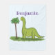 Cute happy green brontosaurus dinosaur cartoon fleece blanket