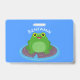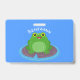 Cute happy green frog cartoon illustration ID badge