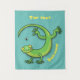 Gecko greetings! This happy lizard design features a cute green reptile with a bug in his sight. Lots of fun!