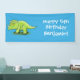Cute happy green triceratops dinosaur cartoon banner