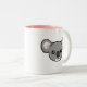 Celebrate our Australian wildlife with this adorable koala design! Featuring a drawing of a cute fluffy grey koala face smiling on a two-tone white and pink mug.