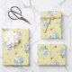 Cute happy hippo with flowers yellow wrapping paper sheet