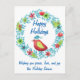 Cute Happy Holidays Flower Wreath with Red Bird Holiday Postcard