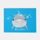 This happy bottle nose dolphin is blowing bubbles! Drawn in cute cartoon illustration style on a blue background.