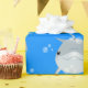 This happy bottle nose dolphin is blowing bubbles! Drawn in cute cartoon illustration style on a blue background.