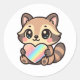 Cute Happy Kawaii Raccoon with Rainbow Heart Classic Round Sticker