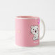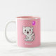 Cute happy kitty cat holding a balloon on Pink Two Two-Tone Coffee Mug