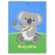 This cute marsupial koala is enjoying a leafy snack and waving hello. Drawn in cartoon illustration style.