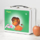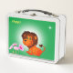 Cute happy lion, flowers and star on green metal lunch box