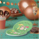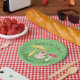 It's party time! This adorable happy mushroom and toadstool trio will add some breakfast fun to any party . Drawn in cute cartoon illustration style on a green and white polka dot background.