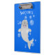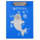 Cute happy narwhal bubbles cartoon illustration clipboard