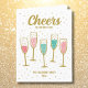 Cute Elegant Happy New Year Cheers Champagne Glasses. Gold pink and aqua on white background.