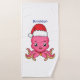 Cute happy octopus wearing Christmas hat cartoon Bath Towel Set