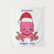 Cute happy octopus wearing Christmas hat cartoon Tapestry
