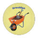 We can really dig this cute happy orange wheelbarrow and spade in fun cartoon style!