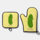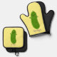 Cute happy pickle cartoon illustration oven mitt & pot holder set