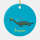 Cute, happy sea monster plesiosaur cartoon ceramic tree decoration