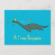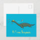 Cute, happy sea monster plesiosaur cartoon postcard