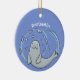 Cute happy seal and fish blue cartoon illustration ceramic tree decoration