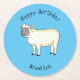 Cute happy sheep cartoon illustration round paper coaster