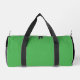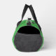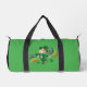 Duffle Bag with an Illustration of a cute happy smiling and dancing leprechaun, he's wearing a green suit and a top hat and is surrounded by rainbow-coloured splashes