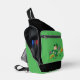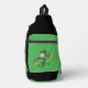 Sling Bag with an Illustration of a cute happy smiling and dancing leprechaun, he's wearing a green suit and a top hat and is surrounded by rainbow-coloured splashes