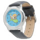Cute, happy snail on a leaf cartoon illustration watch