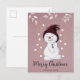 Cute Happy Snowman Pink Christmas Holiday Postcard