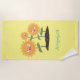 Cute happy sunflowers smiling cartoon illustration beach towel