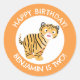 Cute happy tiger cub personalised cartoon birthday classic round sticker