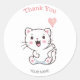 Cute Happy White Cat with Heart Balloon Thank You Classic Round Sticker