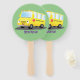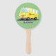 Cute happy yellow school bus cartoon hand fan