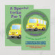 Cute happy yellow school bus cartoon invitation